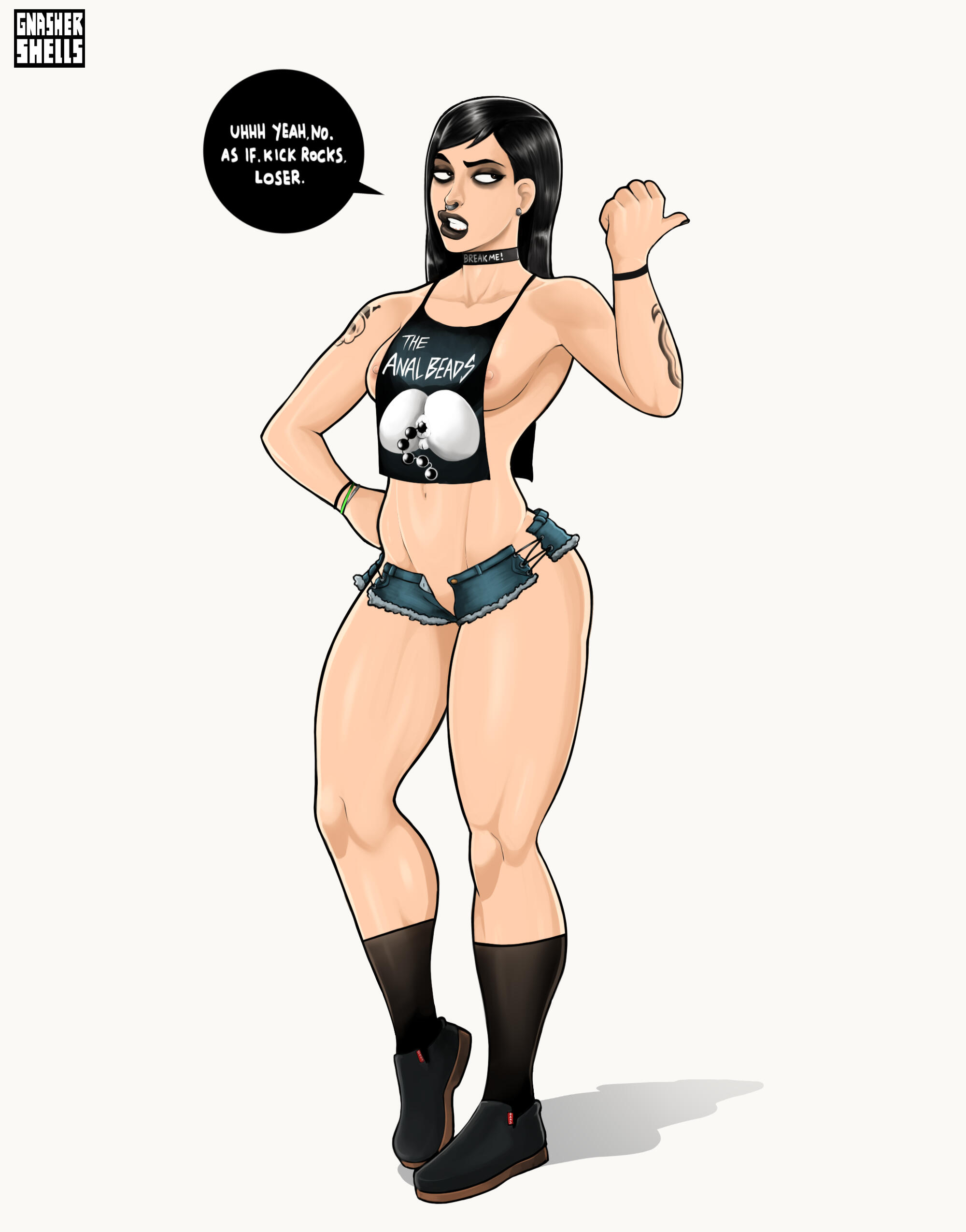 Finalized work will be fully colored, shaded, and rendered in the GnasherShells art style